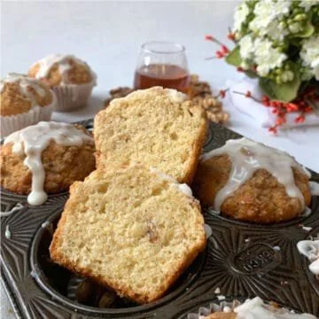 After the muffins have cooled completely and the glaze has hardened, place the muffins in an airtight container. These muffins will keep for 3-4 days.